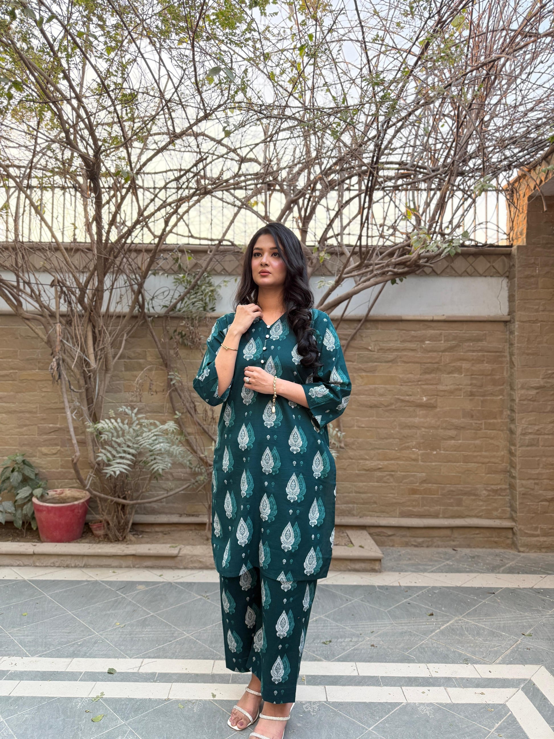 Green Emerald Elegance 2 PC Printed Dress